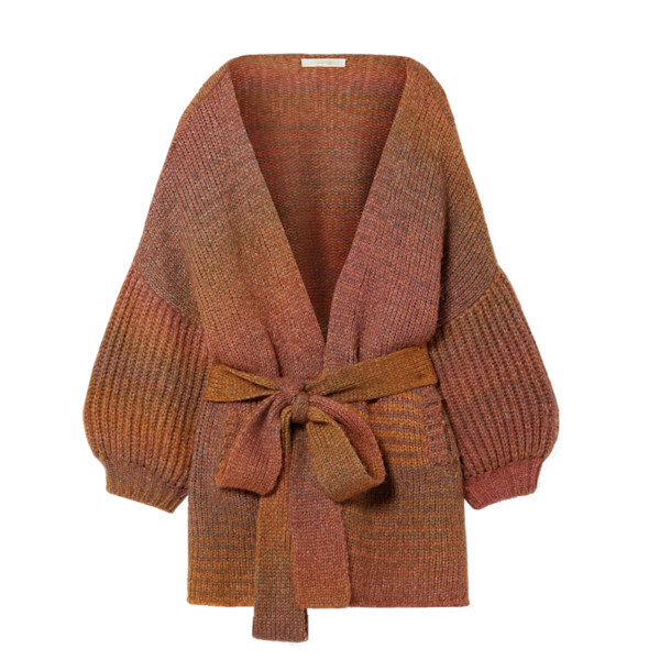 The Brady Shawl is an instant LoveShackFancy favorite in an alpaca-wool blend with a marled ombre color effect. This oversized cardigan has a completely relaxed fit, enveloping the wearer with drop shoulders, dramatic ribbed sleeve details and a ribbed cuff lining the interior seam, side seam pockets and sleeve openings. A separate tie is belted at the waist.