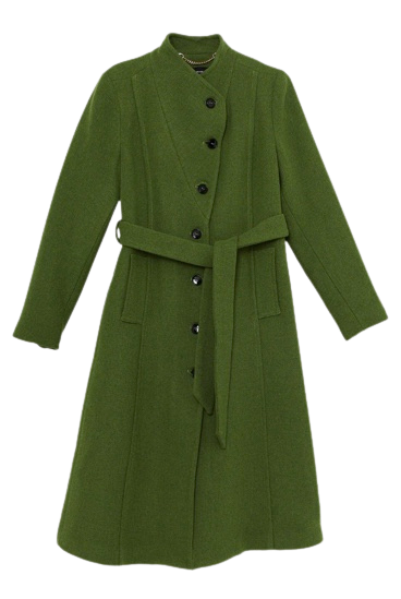 Elevate your look with the belted, asymmetric midi coat in Italian wool, featuring a flattering fit, high neckline, and pockets.