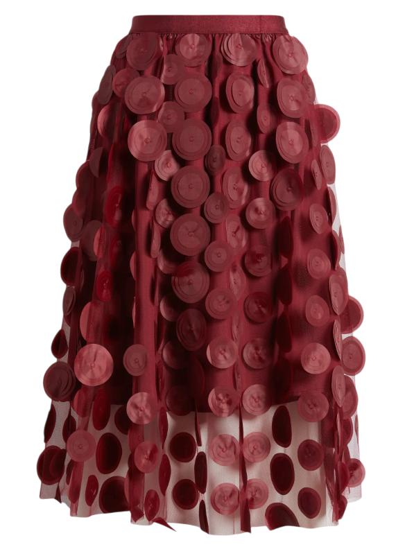 A celebratory skirt is sprinkled with circles and ready to twirl into party season.