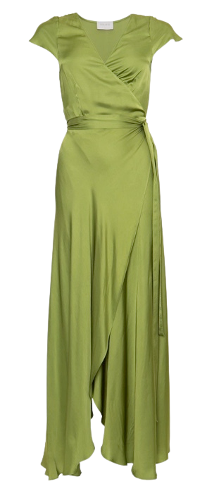 The Doris dress offers a flattering wrap silhouette with a waist tie, handcrafted in Athens from soft, silky viscose for timeless elegance.