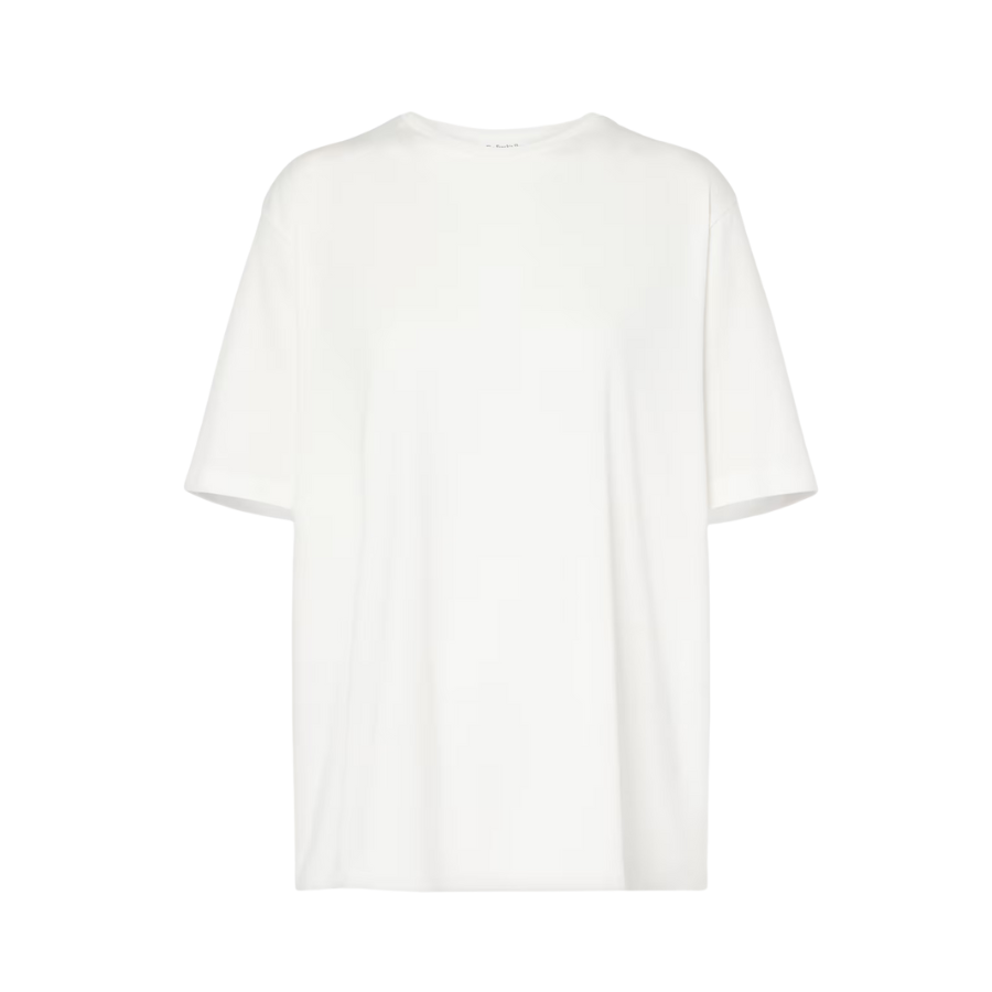 The Franie Shop's perfect off-white lightweight organic cotton fabric tshirt. Boxy fit, crewneck, drop shoulders, slip-on style, unlined.